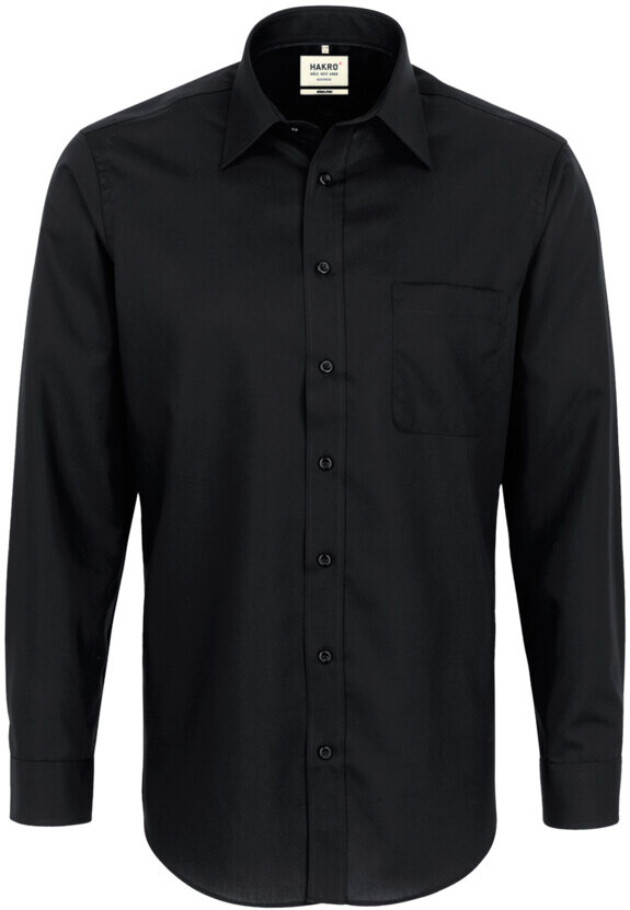 Klassisches langärmeliges Hemd mit Kent-Kragen, aufgesetzter Brusttasche, leicht gerundetem Saum, modischer Paspel aus dunkelblauem Satin an der inneren Kragennaht, hochwertig verarbeiteter Knopfleiste, doppelter Schulterpasse, 4-Loch-Knöpfen - über Kreuz vernäht und doppelt verknotet für extra festen Halt -, Ersatzknöpfen, eingearbeiteten Kragenstäbchen für einen perfekt sitzenden Hemdkragen und weitenverstellbaren Manschetten. Hergestellt aus formstabilem, strapazierfähigem und bügelfreiem Baumwoll-Popeline. Gewebtes HAKRO Necklabel aus hochwertigem Kettsatin mit weichen, ultraschallgeschnittenen Bandkanten für höchsten Tragekomfort.