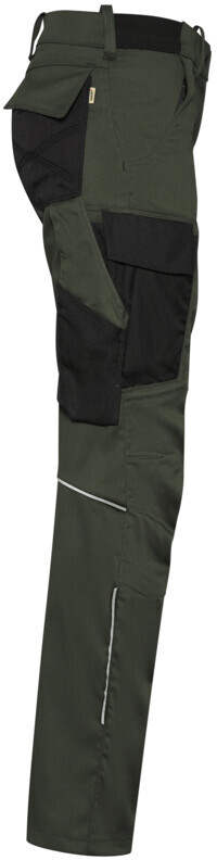 Diese funktionelle Damenhose wurde speziell für den anspruchsvollen Arbeitsalltag entwickelt. Extrem strapazierfähig, mit dehnbarem Hosenbund, Sicherheitsknopf und Reißverschluss, Gürtelschlaufen, eingenähten Reflexbändern und ergonomisch vorgeformter Passform. Zwei Einschubtaschen (rechts mit zusätzlicher Sicherheits-Reißverschlusstasche) und Gesäßtaschen (rechts mit Patte und Klettverschluss), Cargo-Taschen (mit diversen Unterteilungen) und aufgesetzte Zollstock-Tasche auf der rechten Seite sind aus CORDURA® gefertigt. Für Ordnung und Funktionalität im Arbeitsumfeld sorgen zwei seitliche Einschubtaschen – rechts zusätzlich mit integrierter Sicherheitstasche mit Reißverschluss – sowie Gesäßtaschen, davon eine mit Patte und Klett. Geräumige Cargotaschen mit praktischen Unterteilungen und eine robuste Zollstocktasche aus widerstandsfähigem CORDURA®-Gewebe bieten viel Stauraum für Werkzeuge und Arbeitsmaterial. Ein gewebtes HAKRO Label mit ultraschallgeschnittenen, besonders hautfreundlichen Kanten am inneren Bund unterstreicht die hochwertige Verarbeitung. Alle Reißverschlüsse stammen vom Markenhersteller YKK®.