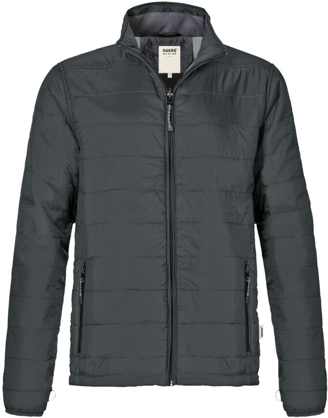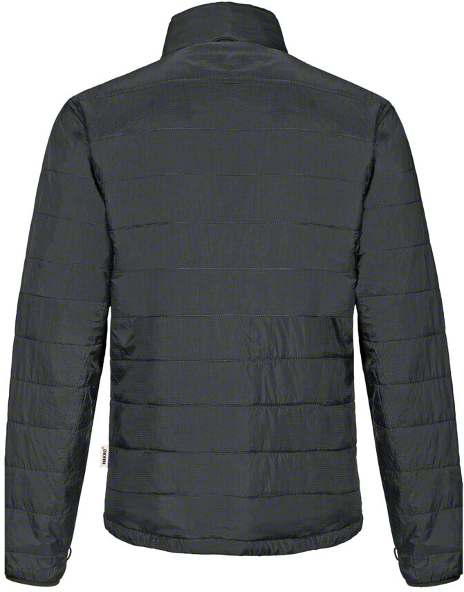 Wärmende Isolationsjacke mit elastischen Ärmelabschlüssen, hochwertigem Zwei-Wege-Frontreißverschluss mit Reißverschlussanhänger, funktioneller Innentasche und seitlichen Einschubtaschen mit Reißverschluss, weitenverstellbarem Bund mit Tunnelkordelzug und Stoppern. Alle Reißverschlüsse von YKK®. Hergestellt aus atmungsaktivem Micro-Ripstop-Außenmaterial mit Wattierung aus wärmender und pflegeleichter Kunstfaser. Gewebtes HAKRO Necklabel aus hochwertigem Kettsatin mit weichen, ultraschallgeschnittenen Bandkanten für höchsten Tragekomfort und gewebtes HAKRO Flaglabel an der linken Seitennaht.
