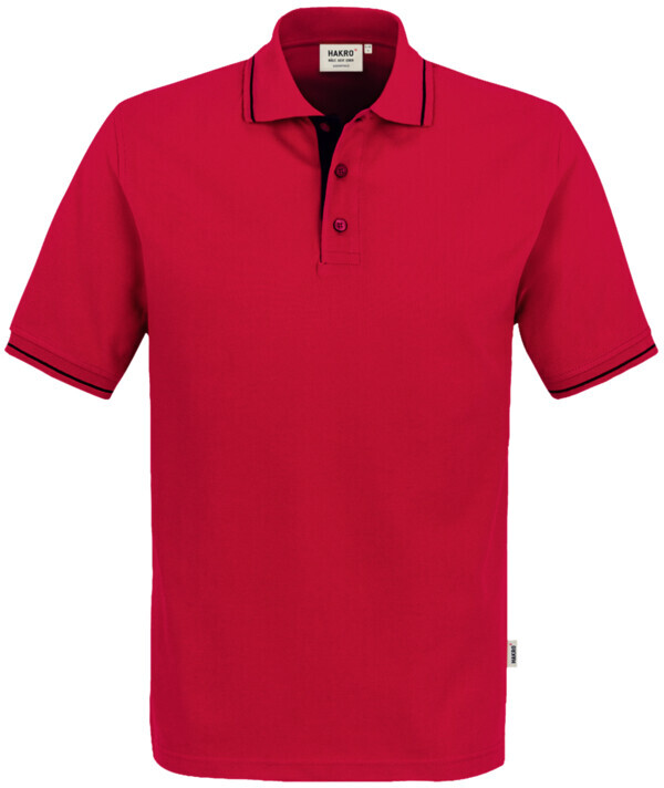 Sportives Poloshirt mit Kontraststreifen im Polokragen und an den Ärmelbündchen, hochwertig verarbeiteter 3-Loch-Knopfleiste mit extra haltbar angenähten, bruchsicheren Knöpfen, Ton-in-Ton mit dem gelaserten HAKRO Schriftzug. Mit Ersatzknopf, Nackenband und doppelt geriegelten Seitenschlitzen. Hergestellt aus feinmaschigem Piqué aus langstapeliger, gekämmter und ringgesponnener Baumwolle. Gewebtes HAKRO Necklabel aus hochwertigem Kettsatin mit weichen, ultraschallgeschnittenen Bandkanten für höchsten Tragekomfort und gewebtes HAKRO Flaglabel an der linken Seitennaht.