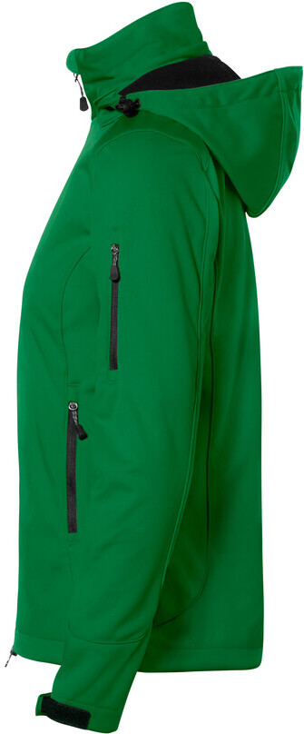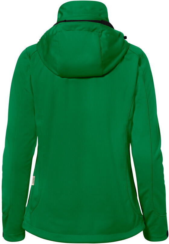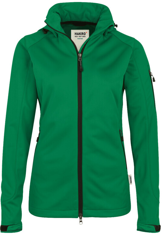 Wärmende, atmungsaktive, strapazierfähige Softshelljacke für Damen, mit wasser- und winddichtem Softshellobermaterial, abnehmbarer Kapuze, weitenverstellbarem Saumabschluss mit Tunnelkordelzug und Stoppern, verlängertem, abgerundetem Rückenteil, leichtem Microfleece an der Innenseite, Klettbändern an den Ärmelabschlüssen zum stufenlosen Regulieren, hochwertigem Zwei-Wege-Frontreißverschluss mit innenliegender Windstoppatte und Reißverschlussgarage, Reißverschlusstasche am linken Ärmel und seitlichen Reißverschlusstaschen. Alle Reißverschlüsse von YKK®. Hergestellt aus dehnfähigem Softshellmaterial für exzellente Bewegungsfreiheit aus Interlock-3-Lagen-Laminat mit TRIACTIVE PRO-Technologie. Gewebtes HAKRO Necklabel aus hochwertigem Kettsatin mit weichen, ultraschallgeschnittenen Bandkanten für höchsten Tragekomfort und gewebtes HAKRO Flaglabel an der linken Seitennaht.