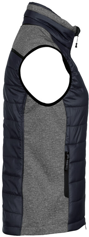 Leichte, wasserabweisende und atmungsaktive Hybridweste für Damen, mit kontrastfarbigen Einsätzen an den Seiten, Schultern und Kragen, hochwertigem Zwei-Wege-Frontreißverschluss mit innenliegender Windstoppatte, Reißverschlussgarage und Einschubtaschen mit Reißverschluss. Alle Reißverschlüsse von YKK®. Saumabschluss mit verlängertem, abgerundetem Rückenteil und Reflexapplikation für bessere Sichtbarkeit. Weitenverstellbarem Saumabschluss mit Tunnelkordelzug und Stoppern. Hergestellt aus einem Materialmix aus atmungsaktivem Micro-Ripstop mit Wattierung aus pflegeleichten Kunstfasern und Einsätzen aus dehnfähigem Softshellmaterial. Gewebtes HAKRO Necklabel aus hochwertigem Kettsatin mit weichen, ultraschallgeschnittenen Bandkanten für höchsten Tragekomfort und gewebtes HAKRO Looplabel am linken Saum. Ihr besonderer Vorteil: Ein verdeckter Reißverschluss im inneren Rückenteil (Revisionsöffnung) ermöglicht das individuelle Veredeln der Weste.